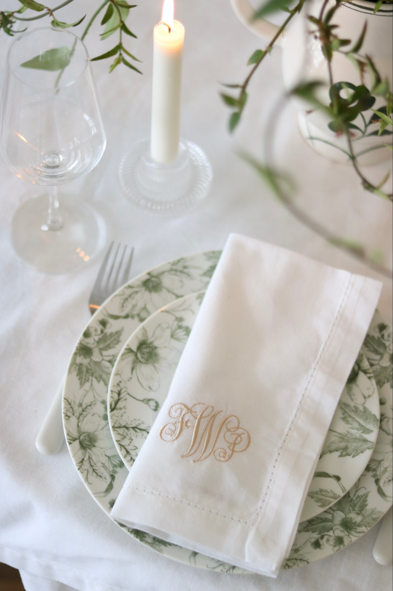For family gatherings, a casual TV dinner or formal dining, our Bespoke Monogram Napkins are a beautiful way to elevate your dining experiences. Made from 100% cotton in India, stitched with detail and care from edge to edge. Add your initials or family monogram in a choice of 44 thread colours. Monogrammed table linen makes a beautiful touch for your gatherings while making a truly special and timeless gift.